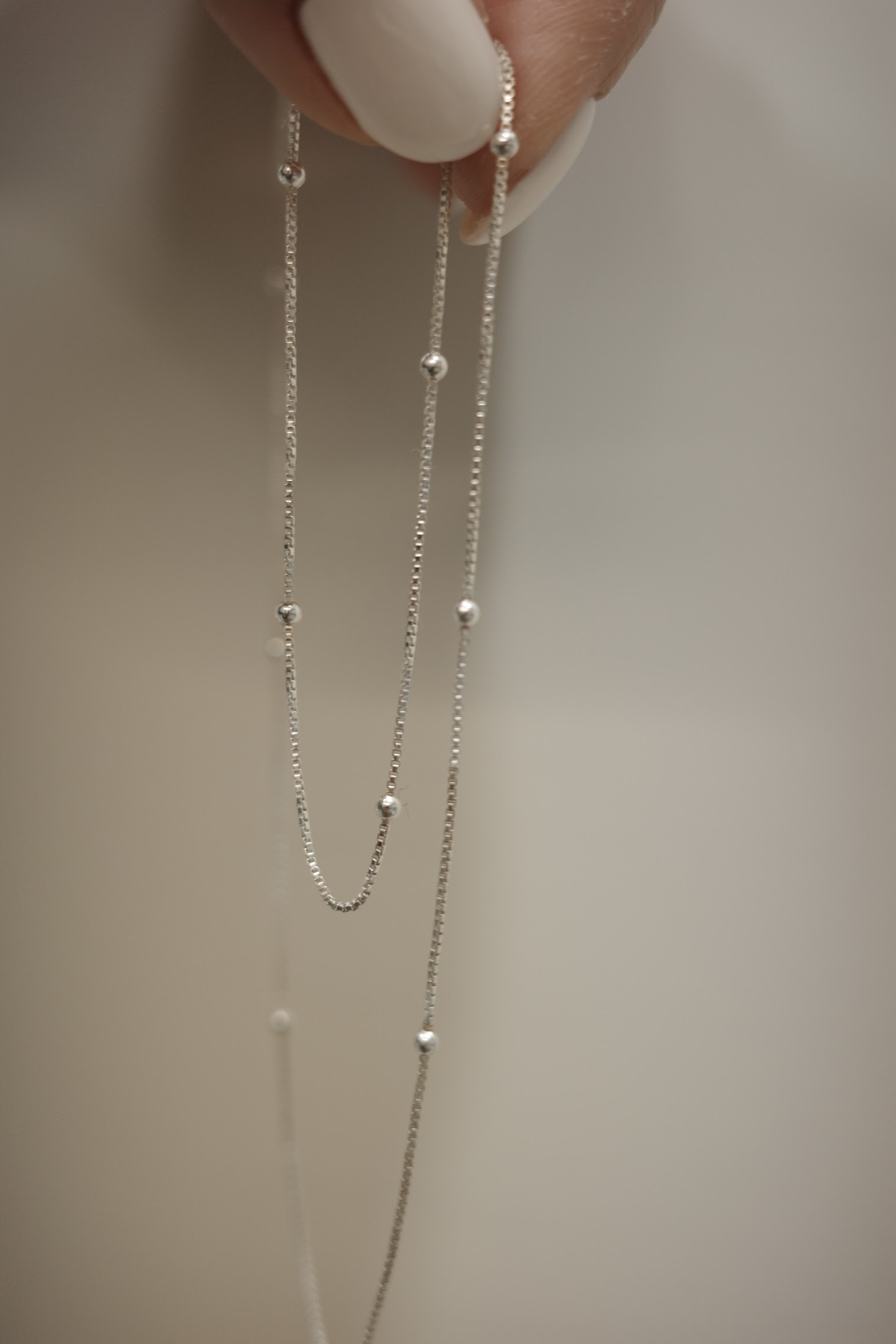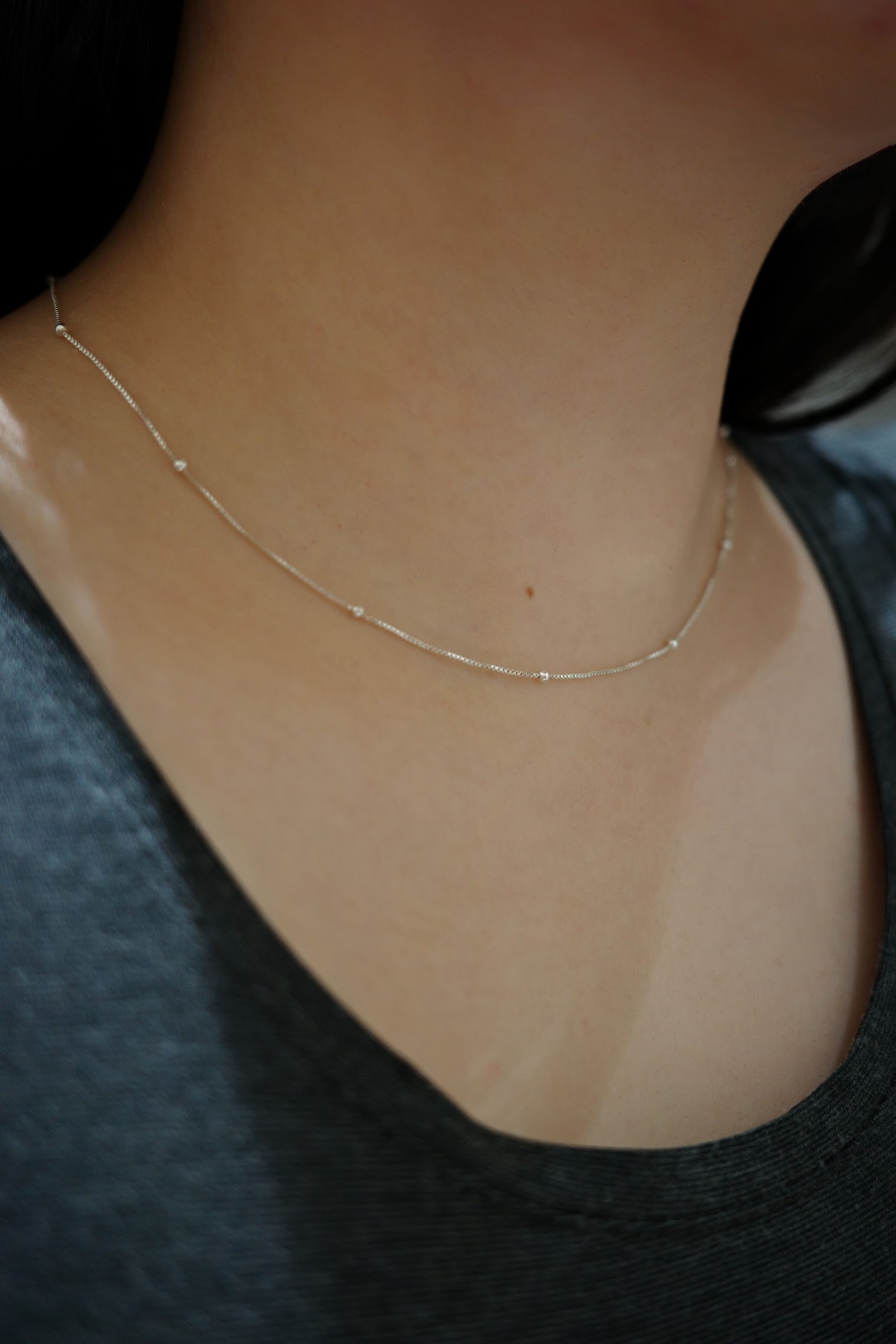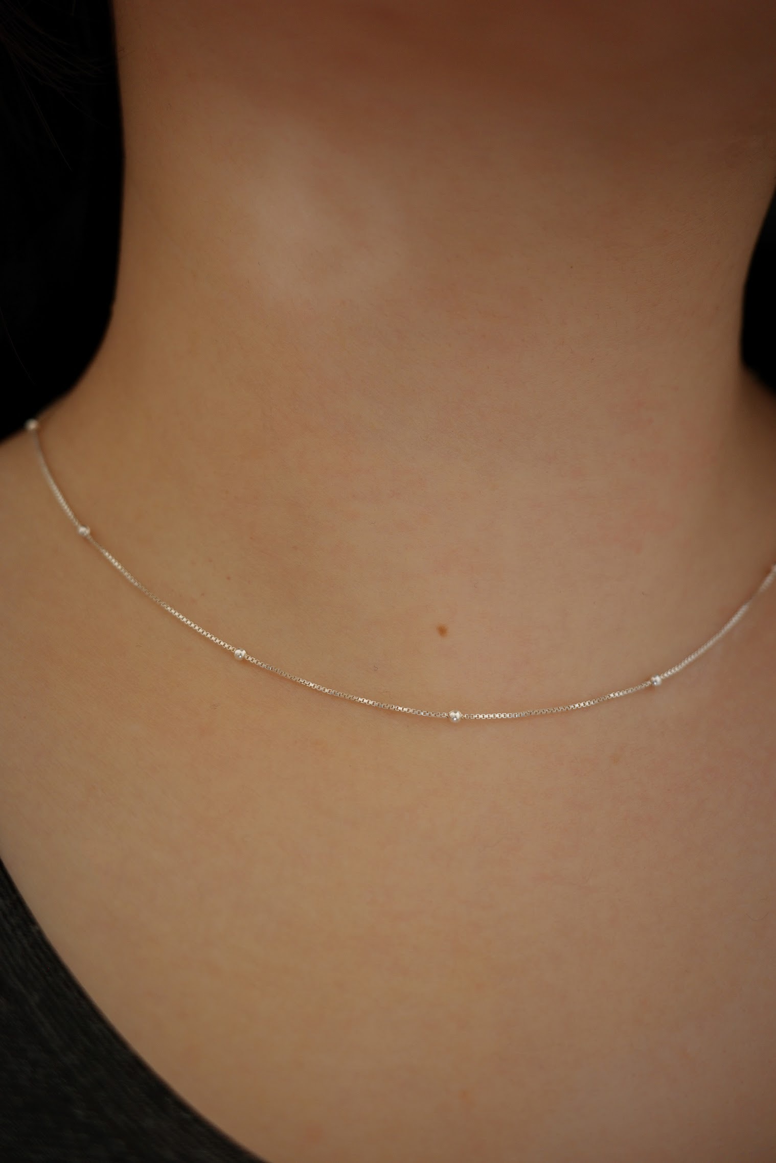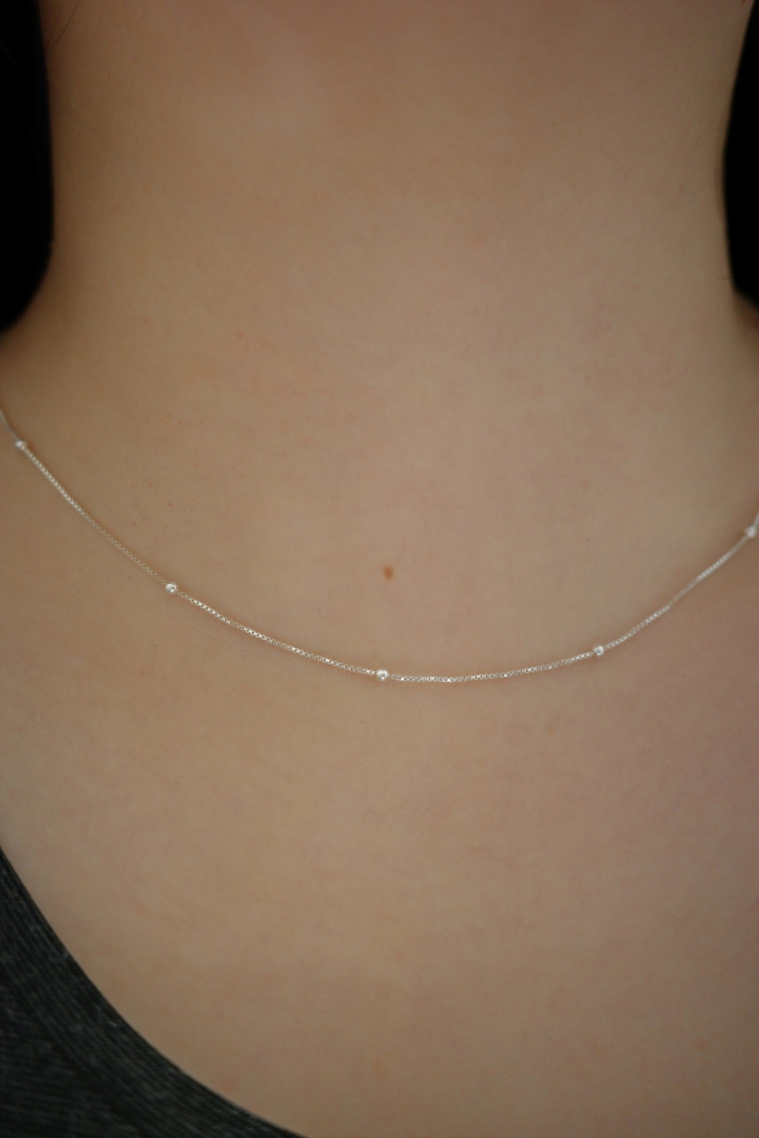 細細的盒子鏈上有迷你珠珠點綴