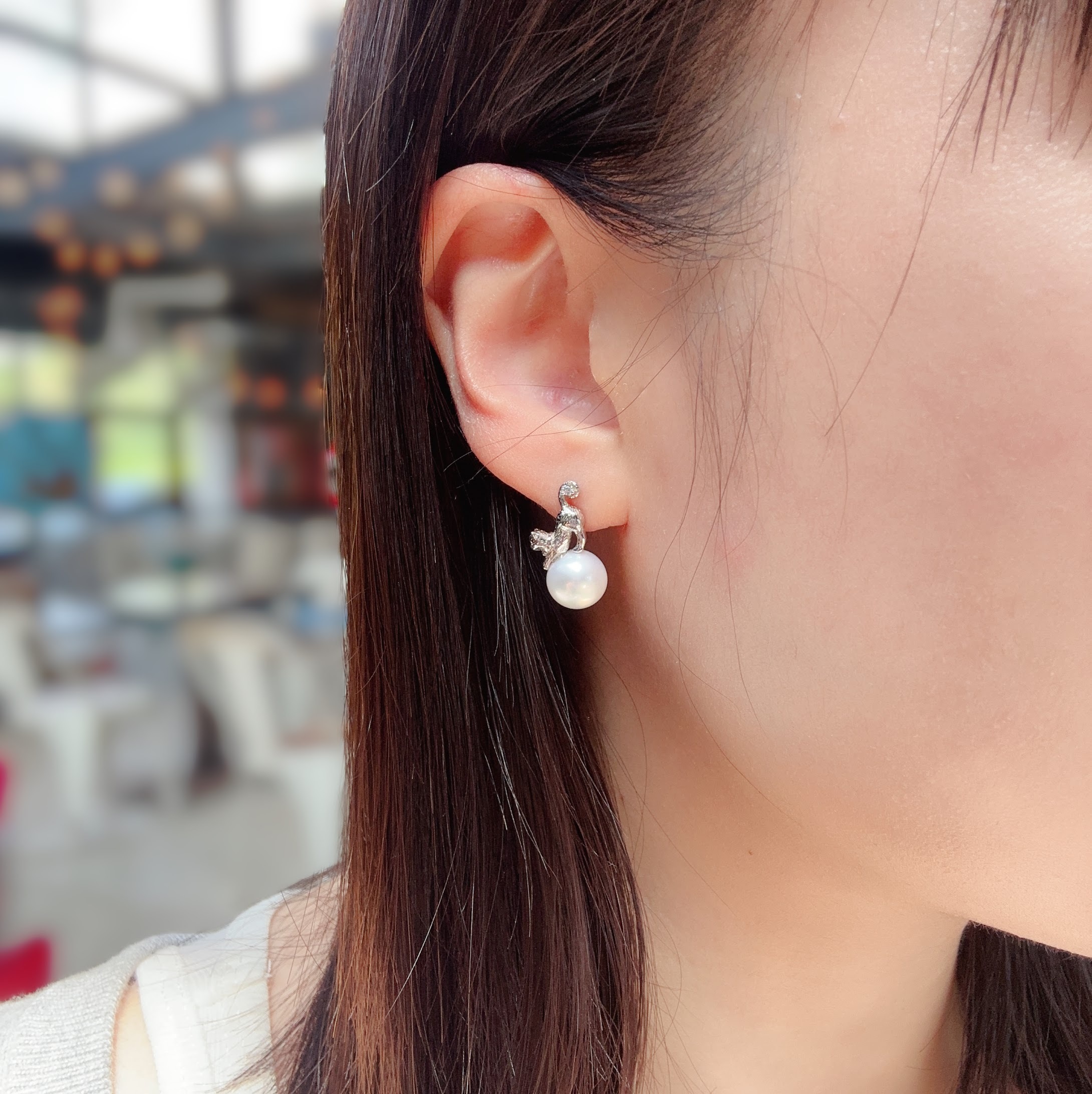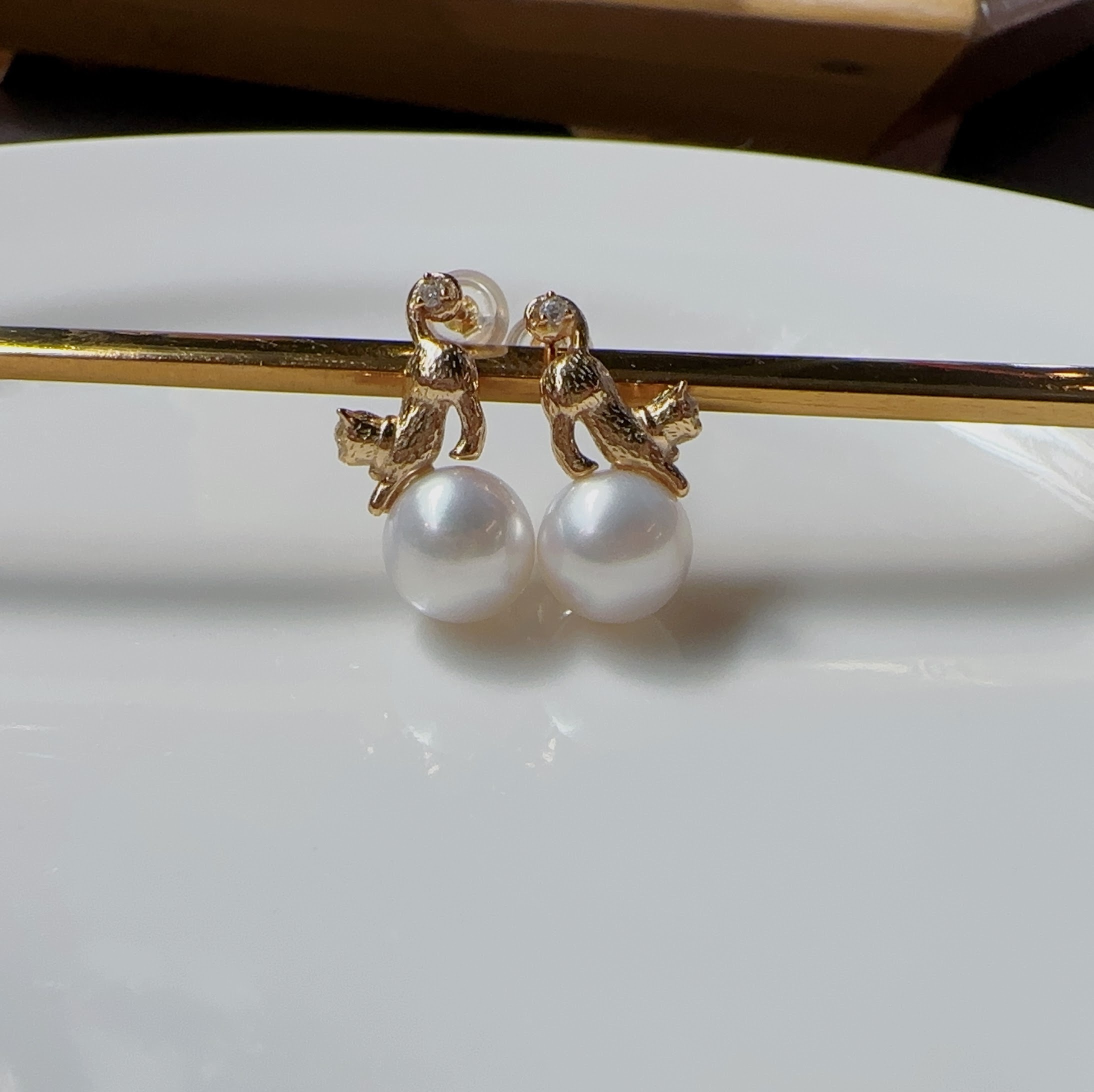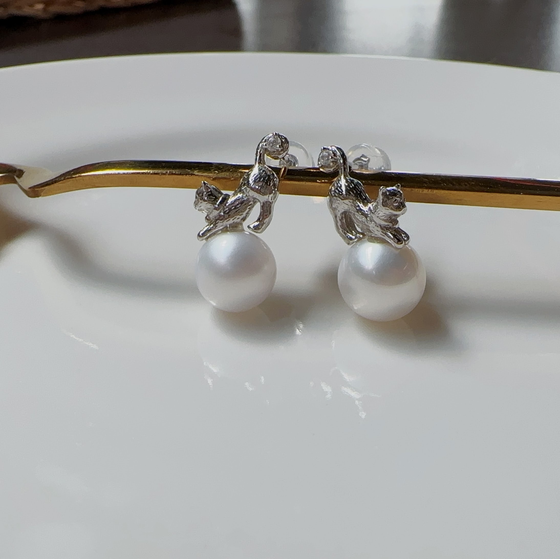 慵懶貓咪~在漂亮珍珠上伸懶腰